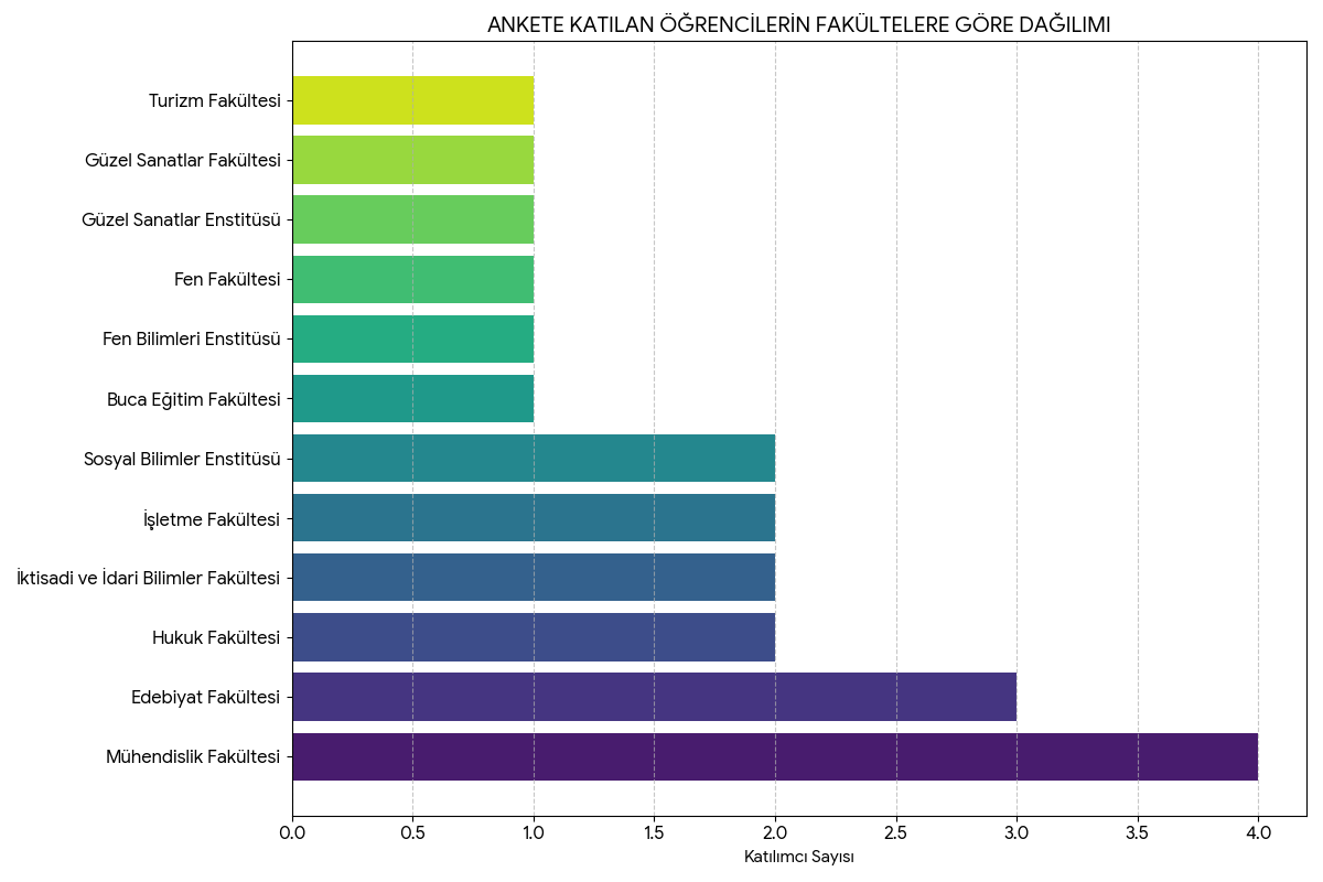 1. Ankete Katılanların Fakültelere Göre Dağılımı